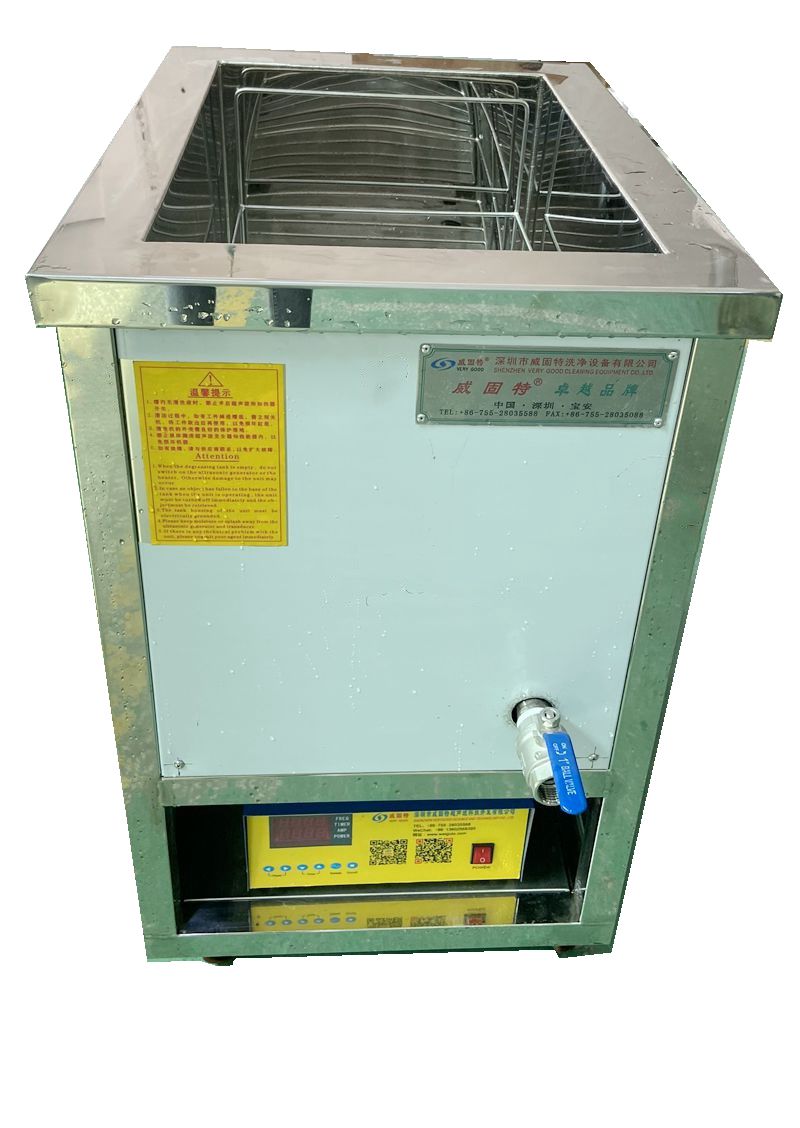 威固特壓鑄鋁件單槽式超聲波清洗機(jī)VGT-1020FA系列超聲波清洗機(jī)主要由超聲波發(fā)聲器、超聲波換能器、清洗槽、工作梯臺(tái)、自動(dòng)溫控加熱系統(tǒng)、清洗籃、機(jī)架與整機(jī)外罩先等組成。